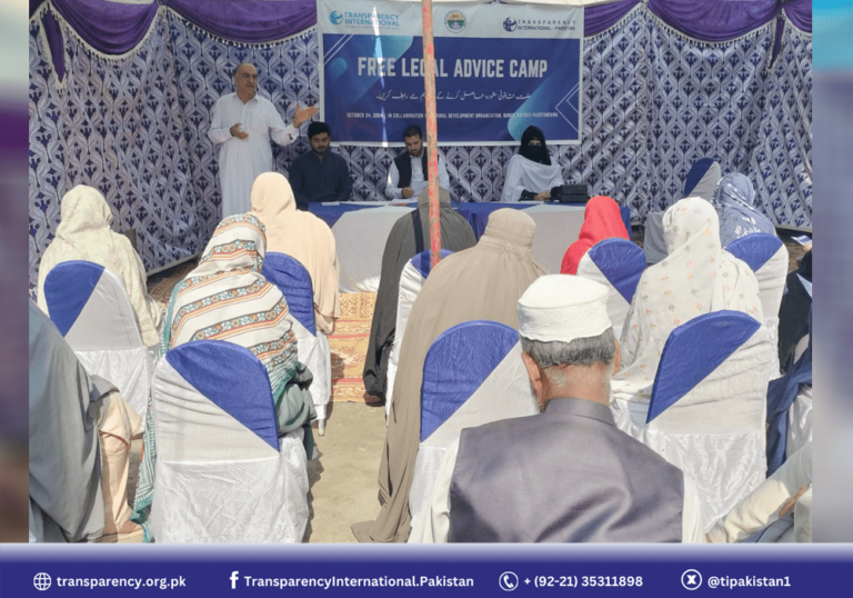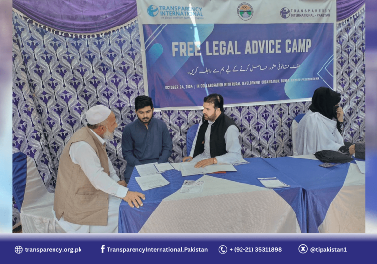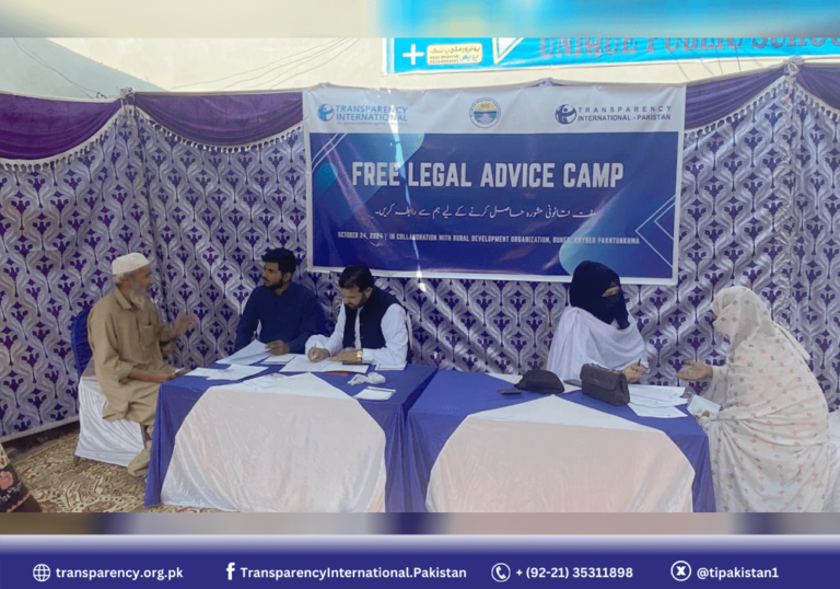 On October 24, 2024, Transparency International Pakistan (TI Pakistan), in collaboration with the Rural Development Organization (RDO), hosted a free, one-day Legal Advice Centre (ALAC) camp in Dagger Tehsil, District Buner, Khyber Pakhtunkhwa. The event was organized to provide essential legal support to the residents of Buner, offering practical legal guidance how they can seek redress for their pressing issues under relevant laws.